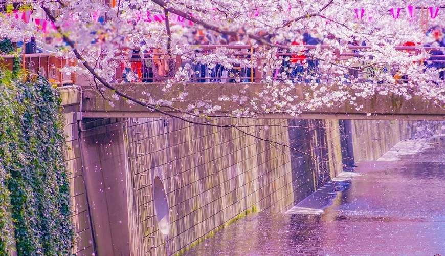 ซากุระที่ริมคลองเมกุโระจะบานสะพรั่งในช่วง ปลายมีนาคม-ต้นเมษายน ในตอนนั้น ซากุระกว่า 800 ต้นจะทอดยาวสร้าง อุโมงค์ดอกไม้ สุดอลังการ และช่วง สถานีนากาเมกุโระถึงสะพานยาโดยามะ จะสวยที่สุด! และพอกลีบร่วงลงน้ำจะกลายเป็น "แพดอกไม้" ที่แสนโรแมนติก แต่แน่นอนว่าความสวยงามนี้ย่อมดึงดูดคนมหาศาล เราเลยอยากแนะนำให้ หลีกเลี่ยงวันหยุดสุดสัปดาห์กับยามค่ำคืนที่แน่นจนยัดเยียด และสามารถเดินชมซากุระได้อย่างเรียบร้อยสบายใจ