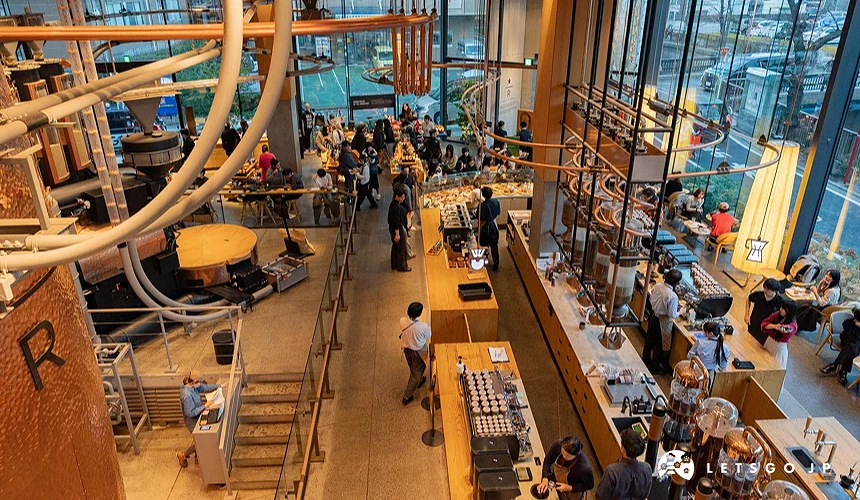 "สตาร์บัคส์ รีเซิร์ฟ โรสเตอรี โตเกียว" ตั้งอยู่ริมคลองเมกุโระ ออกแบบโดยคุมะ เคนโกะ สถาปนิกระดับโลก เป็นอาคาร 4 ชั้นที่มีโทนไม้และแสงธรรมชาติที่ทำให้รู้สึกสบายทันทีที่ก้าวเข้าไป สามารถชมการคั่วเมล็ดกาแฟสด ลิ้มรสกาแฟดริป ชา และค็อกเทล สาขาพิเศษนี้มีเพียงไม่กี่แห่งในโลก คนรักกาแฟต้องมาสัมผัสสักครั้ง